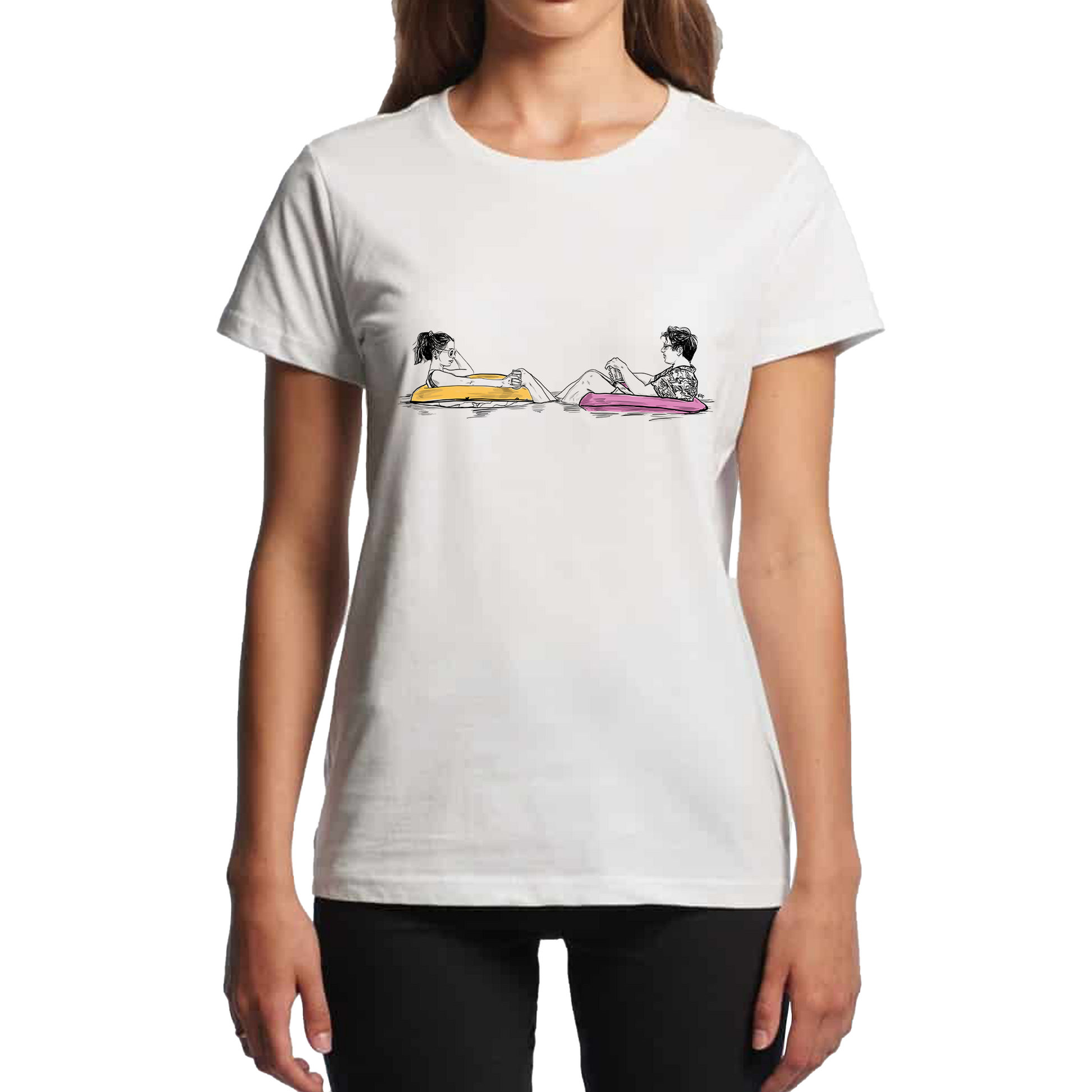 Palm Springs (2020) one of the smartest, funniest, and most criminally underrated films of the last decade. Featuring a stylized illustration of Cristin Milioti’s Sarah and Andy Samberg’s Nyles chilling in a pool as they do when they aren't coming up with new ways to entertain themselves as they re-live the same day over and over.